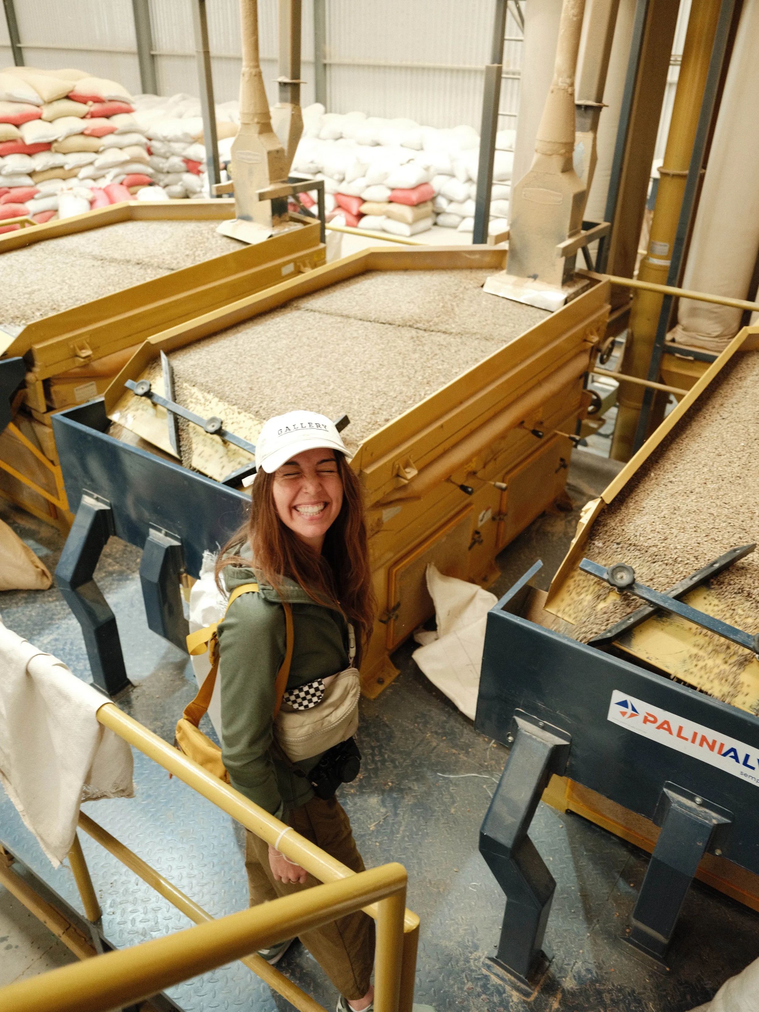Walking through the dry mill was like seeing the industrial-scale version of what we’d learned earlier in Huehuetenango. Coffee arrives dried in parchment and is first dumped into a large receiving pit, where it’s vacuumed upward into a series of sorting machines. Machines separate out debris like rocks, twine, and leaves, before the coffee moves into the miller, which removes the outer parchment layer and reveals the green coffee bean we recognize back at the shop.